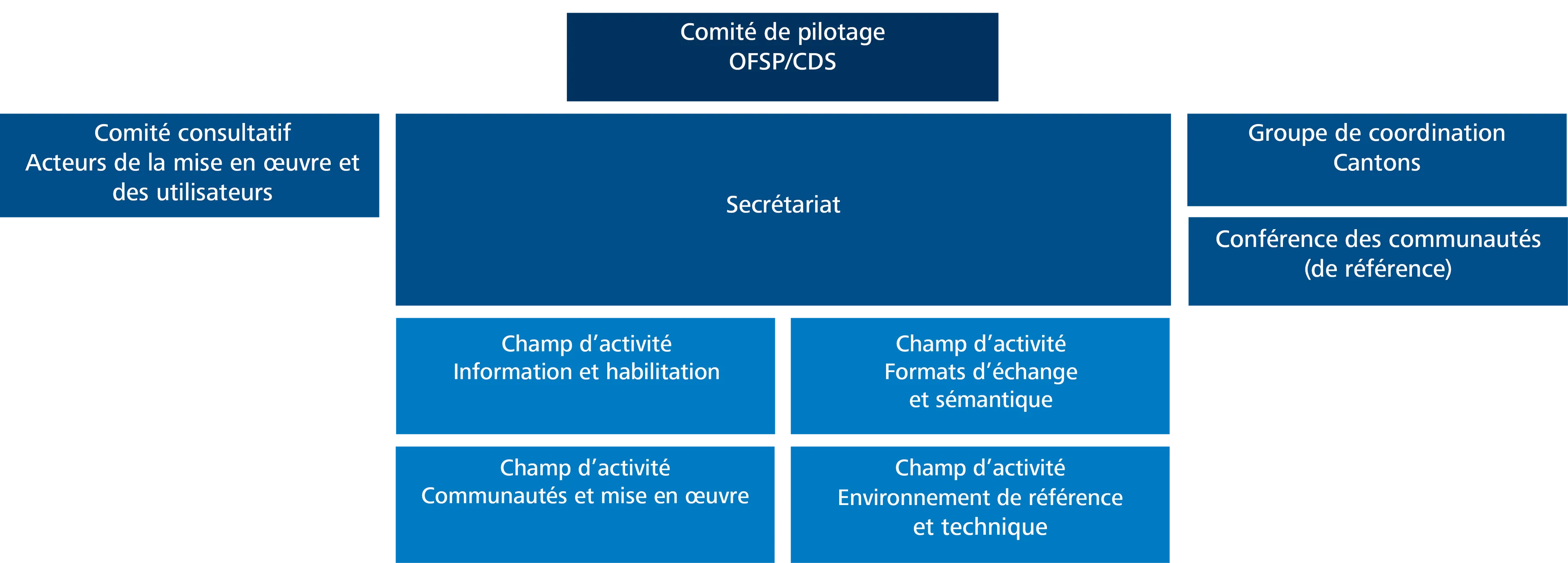Le comité de pilotage est l’organe directeur d’eHealth Suisse. Le comité de pilotage détermine les champs d’activité d’eHealth Suisse. Il définit la planification annuelle dans selon le contrat de prestation d’eHealth Suisse, adopté par